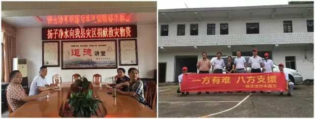 2016年7月,家鄉(xiāng)洪災(zāi)水深火熱,揚(yáng)子人積極聯(lián)系抗洪捐贈(zèng),帶頭解決災(zāi)區(qū)人民健康飲水問(wèn)題。